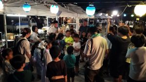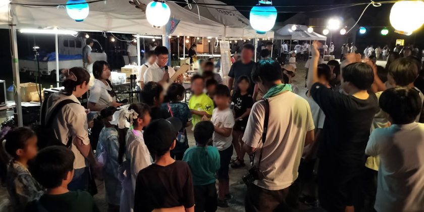 天名夏まつりには進行と音響で参加、放送部の催しとして、公開録音を行いました。祭りに参加した小中学生のみなさんと夏まつりクイズで一緒にひとときを過ごしました。