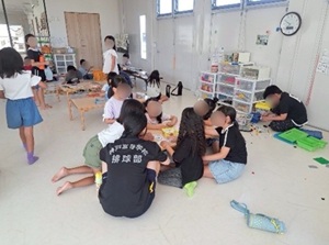 学童に私たちが関わることで職員のサポートができ、結果として受け入れ可能な児童数の拡大や学童の活性化につながるのではないかと考え、この取り組みを実施しました。夏休み期間中には、玉垣小学校区放課後児童クラブゆうゆうさんの学童において、午前・午後合わせて計8日間の活動を行いました。活動内容は、子どもたちとの遊びや見守り、給食の補助など、日常的なサポートが中心です。活動後に実施した保護者および職員の皆さまへのアンケートでは、多くの方から「非常に良かった」という評価をいただき、本取り組みが学童運営の助けになったことを実感しております。さらに、この取り組みを通して、今後より多くの高校生が参加できる体制や仕組みが整うことを願っています。