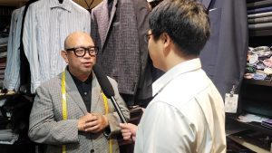 同店は1920(大正9)年に創業、オーダースーツなどを取り扱っています。加藤さんは4代目。長く神戸のまちを見続けてきた加藤さんに、オーダースーツへのこだわりを放送部1年生が聞きました。