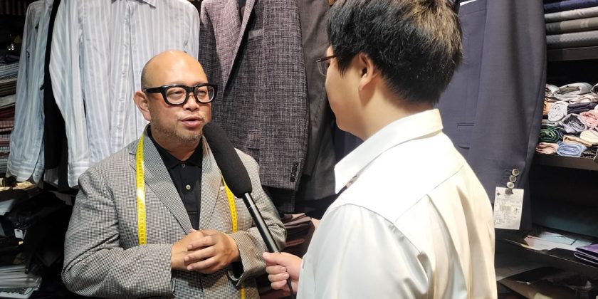 同店は1920(大正9)年に創業、オーダースーツなどを取り扱っています。加藤さんは4代目。長く神戸のまちを見続けてきた加藤さんに、オーダースーツへのこだわりを放送部1年生が聞きました。