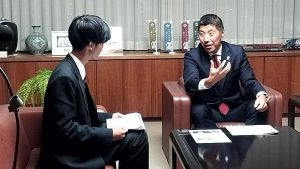 森市長は公認会計士。四日市市議会議員を経て、2016(平成28)年に四日市市長選挙に初当選、現在3期目です。森市長の高校時代の話や現在四日市市で取り組んでいること、四日市市の未来像などを放送部2年生が話を聞きました。