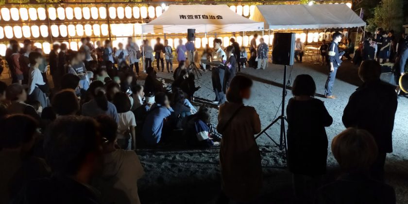 秋の例大祭は毎年この時期に行っているもので、トワイライトコンサートは19時ごろから1時間、本校放送部、書道部、吹奏楽部が出演しました。放送部では、お越しのみなさんと公開録音を実施、音楽3択クイズを行いました。